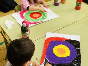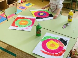 Esta semana hemos estado creando círculos como Sonia Delanauy convirtiéndonos en verdaderos artistas. Hemos usado diferentes técnicas, coloreando con pinturas de barrita y con témperas.