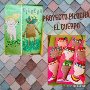 Nuestro Proyecto del cuerpo está en marcha. A través del cuento de Pilocha estamos conociendo las partes de nuestro cuerpo externas y algunas internas, los órganos de los sentidos, las emociones.. y un montón de cosas más. Ya tenemos la portada de nuestro libro y además nuestra puerta está decorada con la imagen de Pilocha cuando era una rama y cuando se convirtió en una niña.