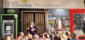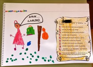 Hoy nos acompañó una persona muy, muy especial: el abuelito de Noa. Nos contó cómo hizo él, el Camino Primitivo. No os lo vais a creer… ¡Lo hizo 6 veces ya! ¡Y ahora ha empezado a hacerlo de nuevo! Nos enseñó su mochila y todo lo imprescindible para hacer el Camino sin problemas: saco, frontal, credencial, cantimplora, capa, capa para la mochila,… y un montón de cosas más. ¡Incluso se metió en el saco! No tenemos palabras suficientes para agradecerte tu visita Luis… Muchísimas gracias a este abuelito tan valiente. Esperamos volver a verte pronto… ¡igual por el Camino!