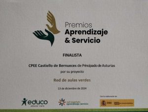 Vino a entregarnos un diploma que ella había recogido en nuestro nombre en Mérida el pasado mes de diciembre, como finalistas de los Premios Aprendizaje Servicio 2024.