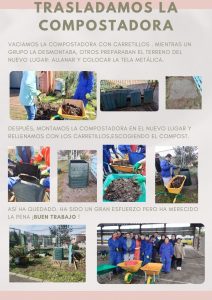 El centro está inscrito en el programa de compostaje de Cogersa este curso. Hemos recibido formación, además se nos ha realizado un seguimiento de la evolución de nuestro compost de forma periódica. Entre una de las medidas que nos han recomendado para la mejora de la gestión de nuestros residuos orgánicos ha sido el TRASLADO DE LA COMPOSTADORA.