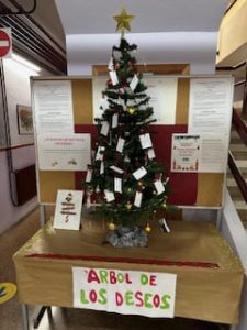 En el hall del centro podemos contemplar un árbol de los deseos, con peticiones para el nuevo año, y en la biblioteca se exhiben las postales participantes en el tradicional concurso de postales navideñas.