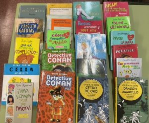 Esta semana nuestra profe de 3 años Ana Peláez, ha hecho una donación a la biblioteca del cole. Nos ha cedido una parte de su infancia en formato papel. Nuestros alumnos de tercer ciclo podrán disfrutar de la lectura de nuevos títulos.