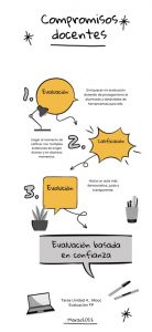 Más que una reflexión sobre la evaluación/ calificación me gustaría señalar lo que este curso me ha aportado ya que ha ampliado mi visión y horizonte docente. Me permite poder incorporar un ecosistema de herramientas variado, rico y novedoso, al menos para mi, así como recursos relacionados con la evaluación que sin duda va a mejorar mi práctica docente.