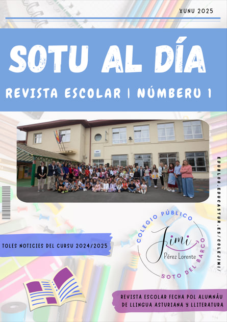 Con muncha ilusión, presentamos la primer edición de la nuestra revista escolar “Sotu al día”. Ye un espaciu que nació pa recoyer el trabayu y les vivencies del cursu escolar nel nuestru cole, utilizando l’asturianu como llingua vehicular pa normalizar el so usu y fomentar la competencia llingüística del alumnáu de Llingua Asturiana y Lliteratura. ¡Esperamos que vos preste la llectura!