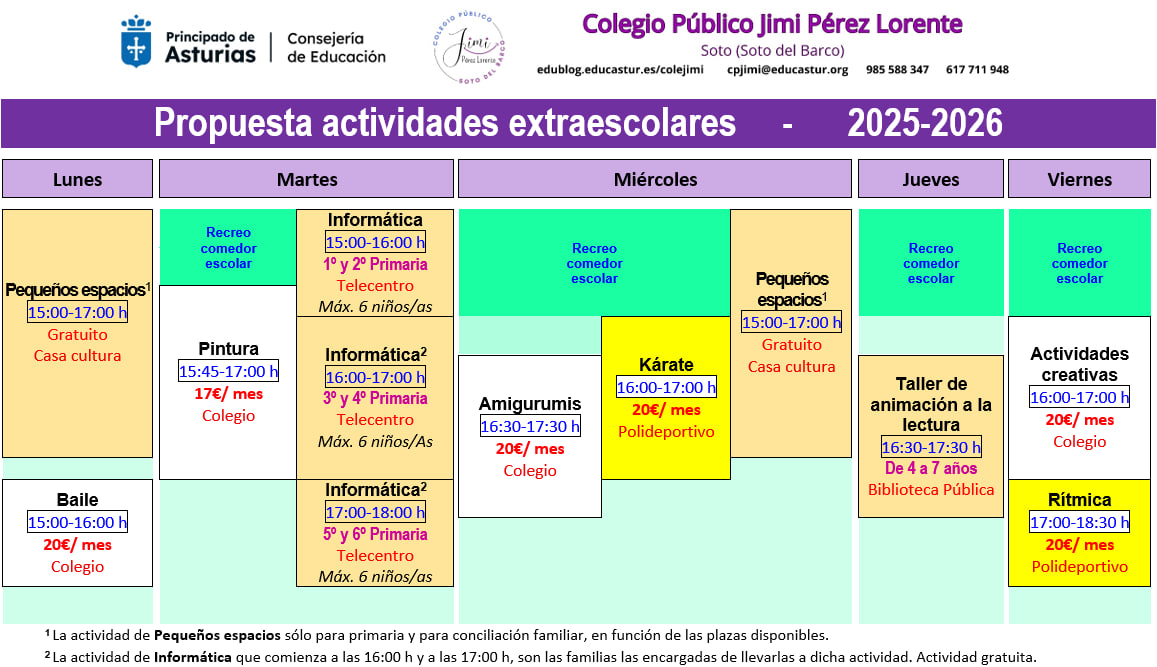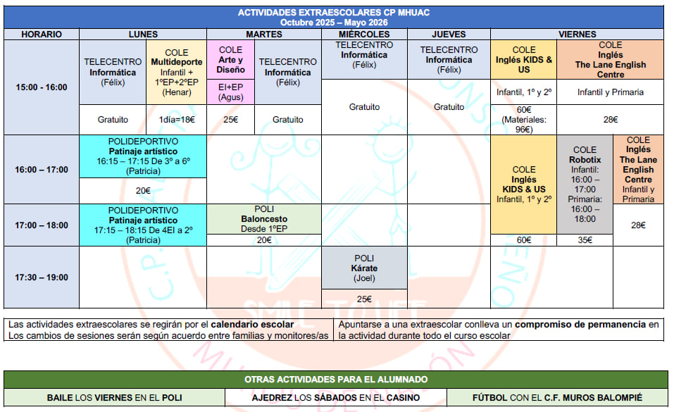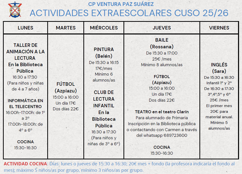 Propuesta de actividades extraescolares (septiembre´24) CP Ventura de la Paz Suárez (San Juan de La Arena)