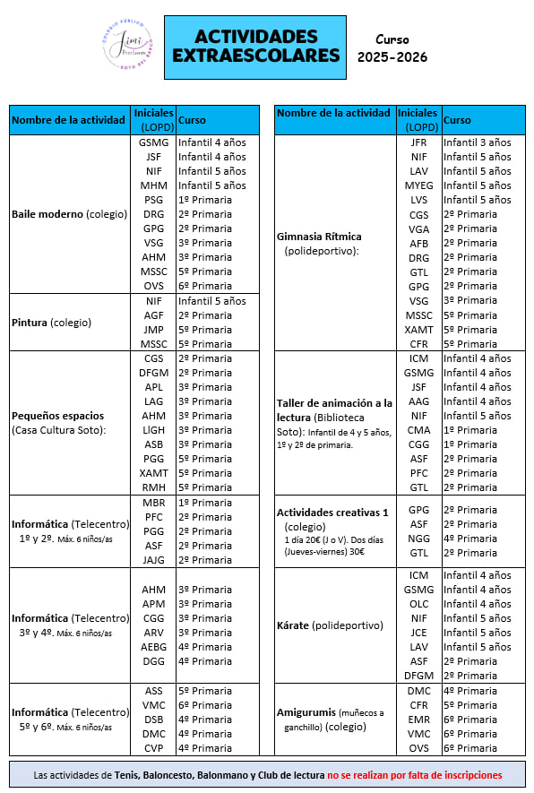 Actividades extraescolares 2025-2026