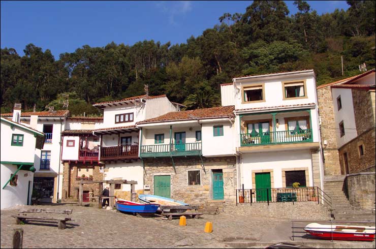 L’asentamientu de los nucleos marineros produzse al pie d’un puertu o llugar d’atraque protexíu, cola tendencia a l’agrupación pola llimitación del territoriu más cercanu a la mar. Y polo tanto al crecimientu n’altura debío a la espaciu restrinxíu. Les fachaes suelen tener collores vives, ya que se solíen pintar colos restos de pintura de les barques marineres.