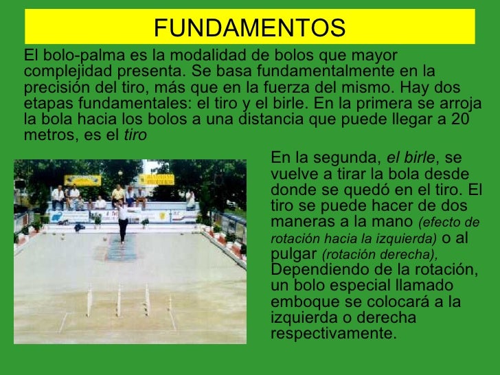 - Se tira para derribar los bolos y se birla cuando se coge nuevamente la bola,