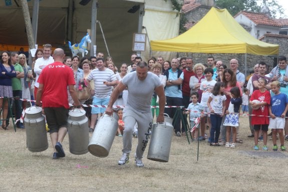 La carrera de lecheres es otra prueba que no suele faltar. En ella se imita la resistencia de los ganaderos que antiguamente cargaban con las lecheras de 35 litros. Hoy en día, en las competiciones, las lecheras se han sustituido por unos cilindros de hierro macizo con asas de aproximadamente ese peso. La prueba consiste en recorrer con ellas la mayor distancia posible en un tiempo determinado sin apoyarlas en el suelo. En ocasiones es mayor el peso de las lecheras que el de los participantes: una prueba extremadamente dura.