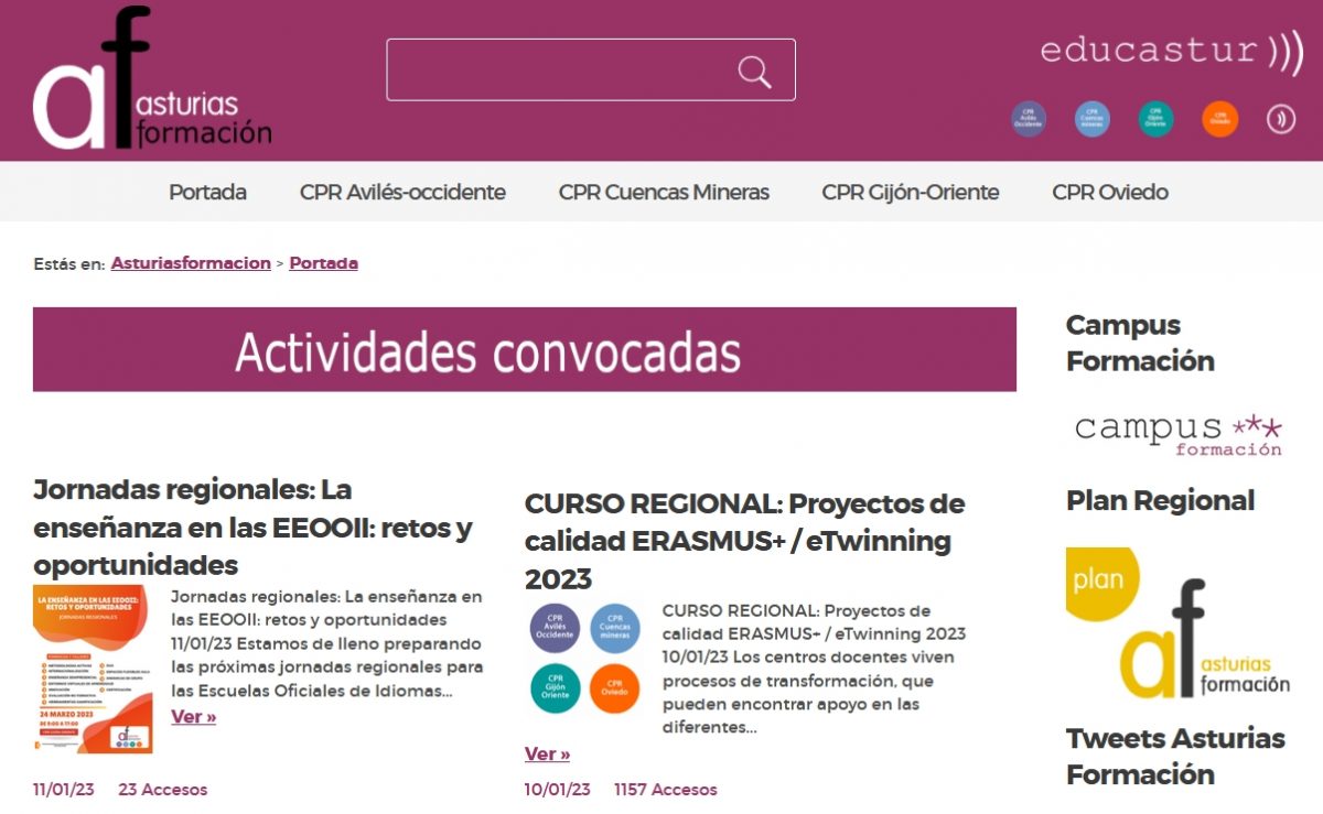 Desde el 1 de enero toda la información relativa a las actividades formativas de los cuatro Centros de Profesorado y Recursos se publica en una única página web, la web de Asturias formación.