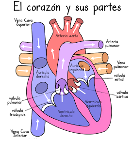 Así, la sangre con residuos llega a la aurícula derecha a través de las venas cavas, mientras que la sangre oxigenada llega al corazón a través de las venas pulmonares y se reparte por todo el cuerpo a partir de la aorta.