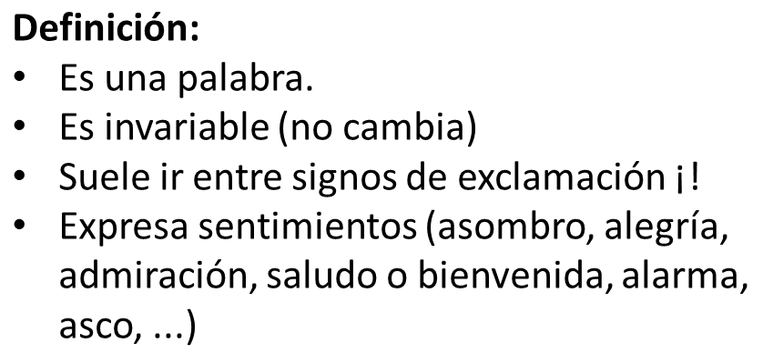 Las interjecciones son palabras que expresan sentimientos muy vivos, de dolor, de alegría, de tristeza, etc. Podemos decir que son reacciones del hablante que se materializan a través de la palabra.