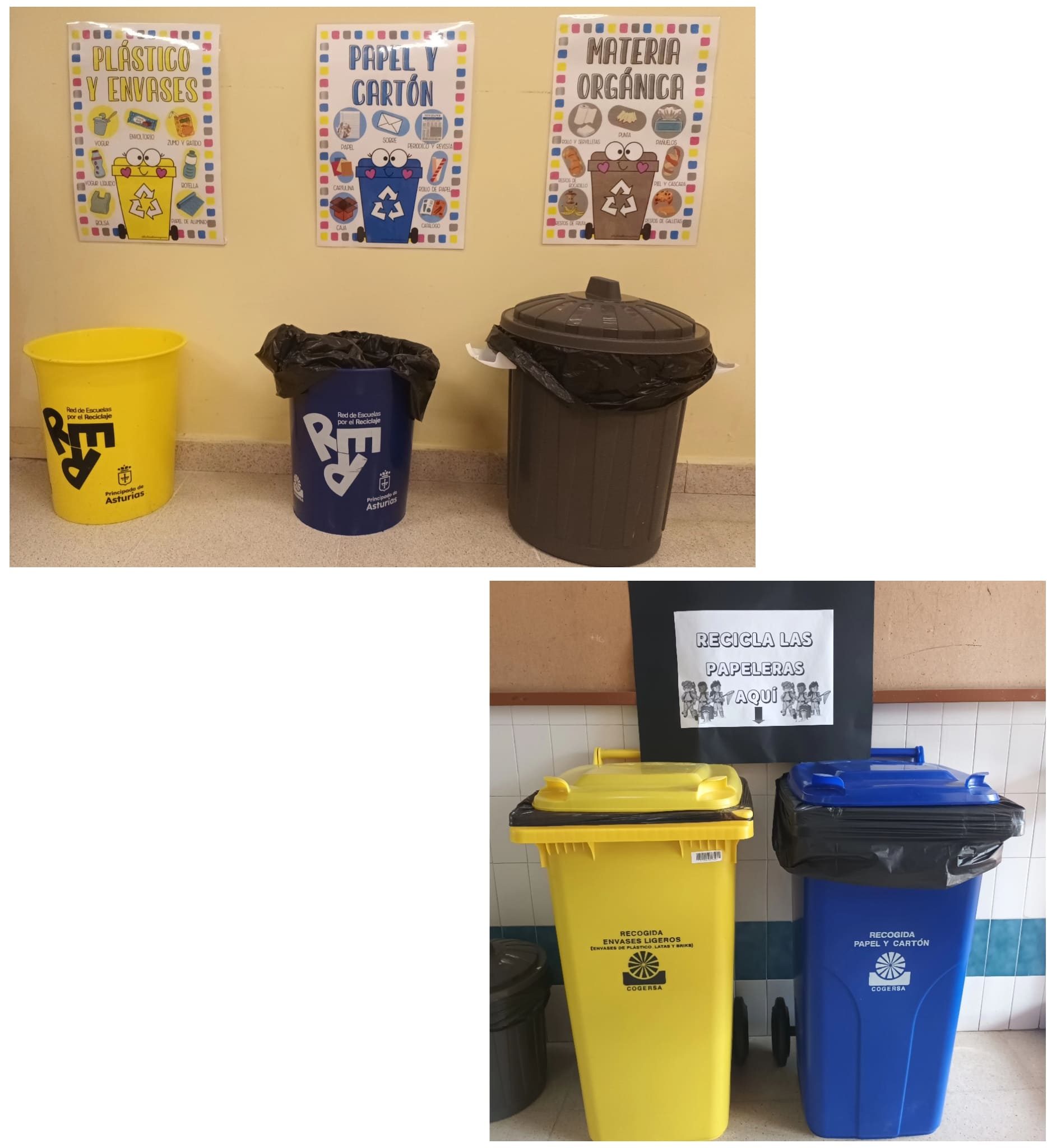 Asimismo, elaboramos unos carteles por todos los rincones para facilitar el reciclado indicando en ellos los residuos que se deben tirar, atiendo a los colores de los cubos.