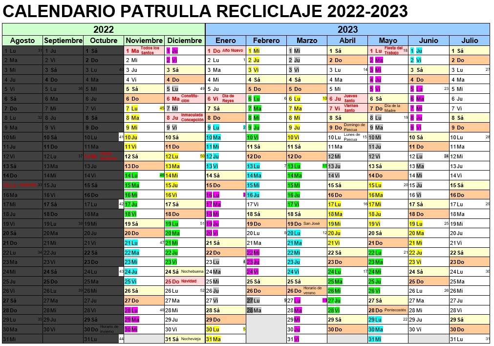 Cada grupo tenía un color asignado para saber que semana les tocaba llevar a cabo esta misión.