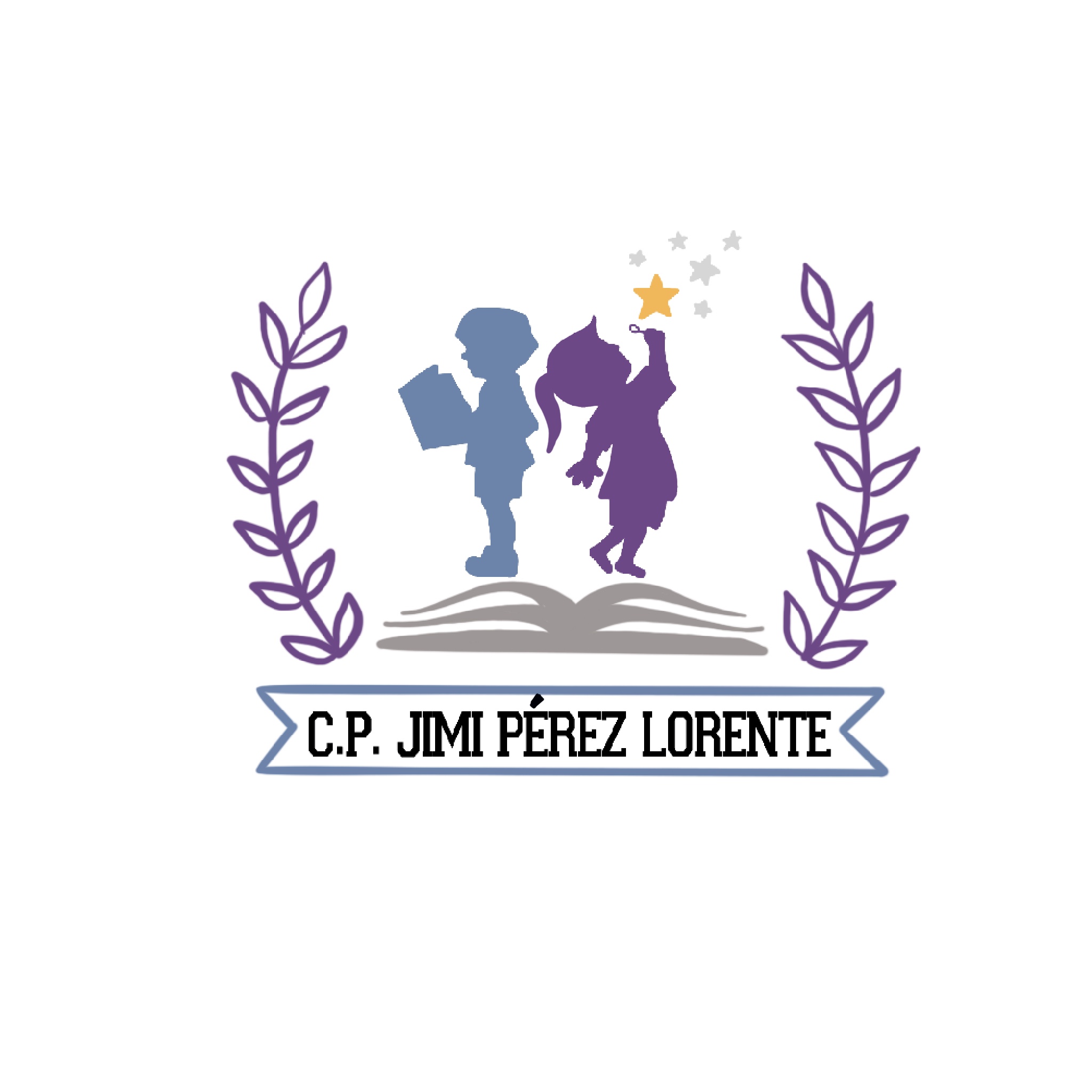 El logo se ha diseñado pensando en la educación, teniendo el libro como base; los dos niños, uno representa la esencia del colegio: educación, aprendizaje… y el otro se ha querido hacer referencia a Jimi con la estrella ⭐.