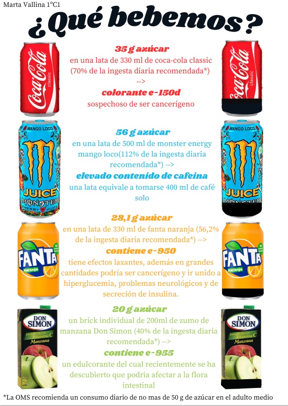 Con motivo de la Semana Europea de Prevención de Residuos, alumnado de bachillerato de la asignatura de física y química han realizado infografías analizando las bebidas que consumen los jóvenes de hoy.
