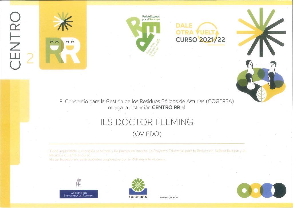 Como os contamos en la entrada anterior, llevamos cuatro cursos en a Red de Escuelas por el Reciclaje, pero en ese breve recorrido, el curso 2021-22 hemos sido distinguidos como centro RR, lo que nos hace mucha ilusión.