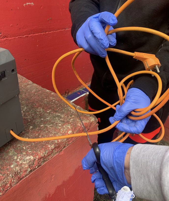 El alumnado de segundo curso del Ciclo Formativo de Grado Básico en Servicios Administrativos, esta semana , hemos revisado los contenedores que tenemos en nuestro centro destinados a residuos de aparatos eléctricos y electrónicos (RAEE),y hemos cortado las cables para que nuestros compañeros de los Ciclos Formativos de la Familia de Electricidad y Electrónica los puedan utilizar en sus prácticas.