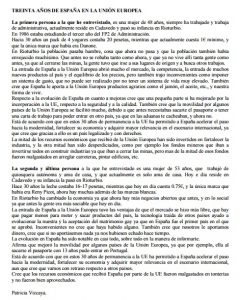 Desde las instituciones de la Unión Europea se quiere hacer balance de las transformaciones económicas, sociales y políticas experimentadas por España desde la adhesión a la entonces Comunidad Europea en 1986 hasta hoy, 30 años más tarde.