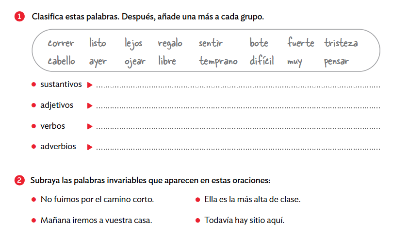 Ahora resuelve con ayuda de tus compañeros/as de equipo esta actividad sobre las clases de palabras.