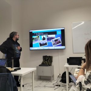 El profesor rumano Dragos nos hizo una presentación sobre su escuela y su ciudad Reșița.