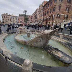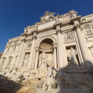 Fontana de Trevi, actualmente en restauración se visita pasando muy cerca de las esculturas por encima de un andamio habilitado al público.