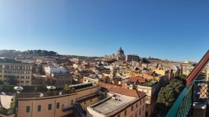 Vistas al Vaticano, desde terraza en una azotea (rooftop). Se aprecia la Basílica de San Pedro en el medio.