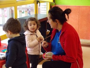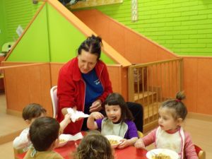 Flexibilizan sus rutinas de manera que no salen al patio exterior para disfrutar de la propuesta de juego libre del aula, y toman el tentempié en grupo más grande como momento especial de celebración y socialización.