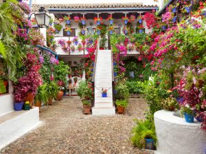 5.- Festival de los patios, Córdoba. Debido a la climatología los habitantes de Córdoba, primero los romanos y más tarde los musulmanes, adaptaron la tipología de casa popular a las necesidades, centrando la vivienda en torno a un patio, que normalmente tenía una fuente en el centro y en muchas ocasiones un pozo que recogía el agua de lluvia. Desde el año 1921 el Ayuntamiento de Córdoba organiza durante la primera quincena de mayo un concurso de Patios, en el que los propietarios engalanan sus viviendas para conseguir el prestigioso galardón ofertado por el Consistorio.  Además este festival está considerado Patrimonio de la Humanidad.