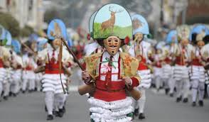2.- Entroido de Verín, Orense. Sus orígenes no están muy claros, pero se cree que está relacionado con los ritos agrícolas y ganaderos prerromanos. Tiene lugar durante tres domingos y se caracteriza por ser un carnaval en el que el protagonismo lo  tienen las máscaras, la música y la diversión. Los personajes centrales son los Cigarrones que con su camisa blanca, su calzón corto y su cinturón, del que cuelgan los cencerros, se dedican a perseguir a los vecinos de la localidad con el látigo en la mano.Fue declarada Fiesta de Interés Turístico Nacional en el año 2009.