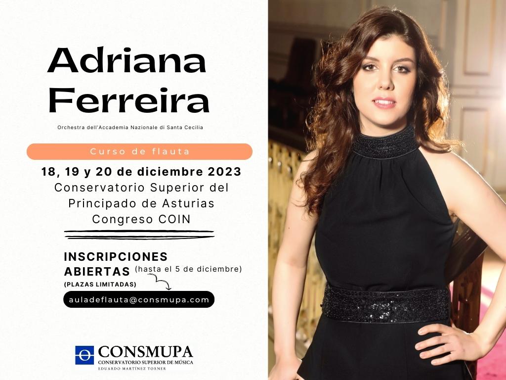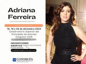 Los días 18, 19 y 20 de diciembre se celebrará dentro del VI Congreso COIN un curso con Adriana Ferreira, flauta solista de la Orquesta Santa Cecilia de Roma.