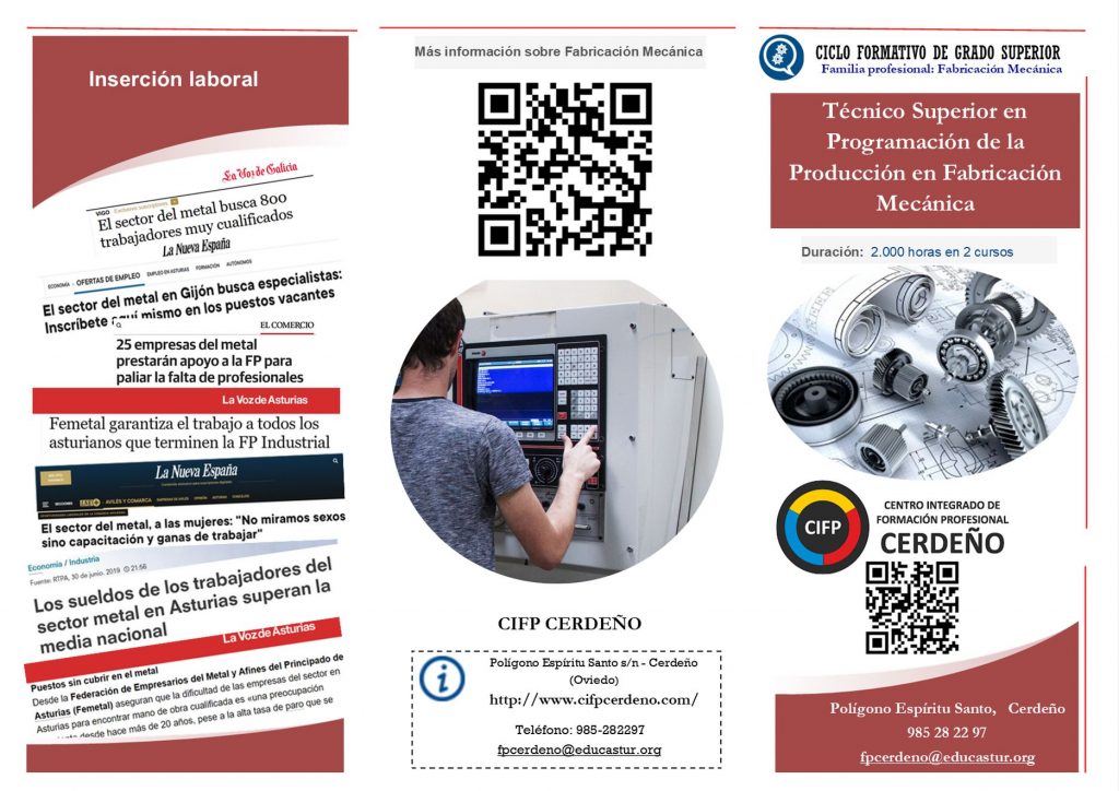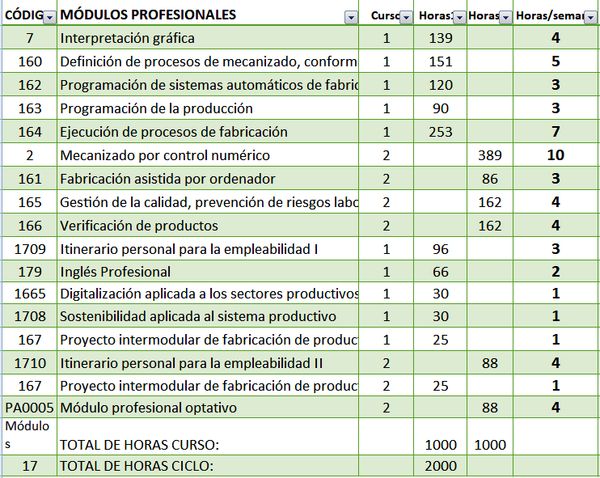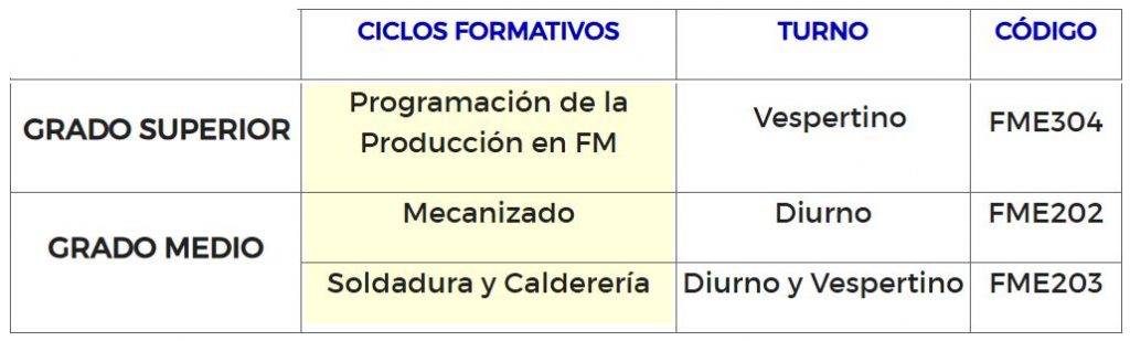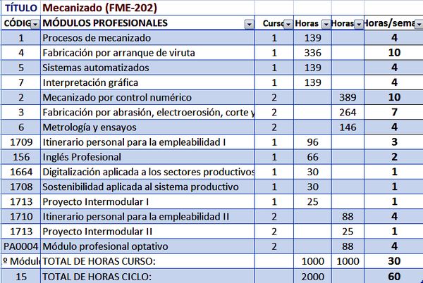 Breve y gráfica explicación. Qué son los ciclos formativos de Mecanizado y de Programación de la Producción que pertenecen a la familia de Fabricación Mecánica en el CIFP Cerdeño de Oviedo