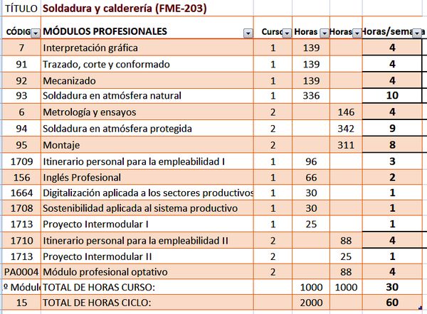 La nueva FP dual contempla que el alumnado realice en la empresa 120 horas de formación durante el 1º curso y 380 horas durante el 2º curso.