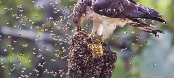 Estrechamente ligado a áreas boscosas, el abejero es una rapaz estival en nuestro país, que realiza largas singladuras hasta alcanzar el continente africano, donde inverna, para lo que necesita antes canalizar su migración a través del estrecho de Gibraltar, donde se concentra en gran número. Las adaptaciones a sus curiosas preferencias alimentarias —avispas, abejorros— lo llevan a sincronizar su ciclo reproductor y migración con el periodo de mayor abundancia de estas singulares presas para una rapaz.