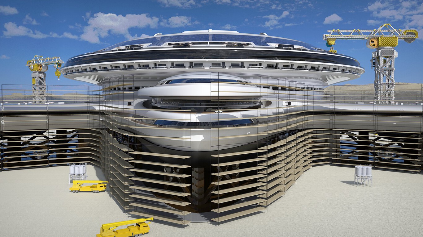 ¿Ye posible construyir una ciudá flotante sol conceutu de yate? Paez que sí, según amuesa l’estudiu italianu Lazzarini nel so últimu proyectu: un terayate de 550 metros de llargu y 610 d’anchu. Trátase d’un vehículu de luxu de mayores dimensiones qu’un yate, que’l so valor de construcción ye de 8.000 millones de dólares -lo qu’equival a una cantidá similar n’euros-.