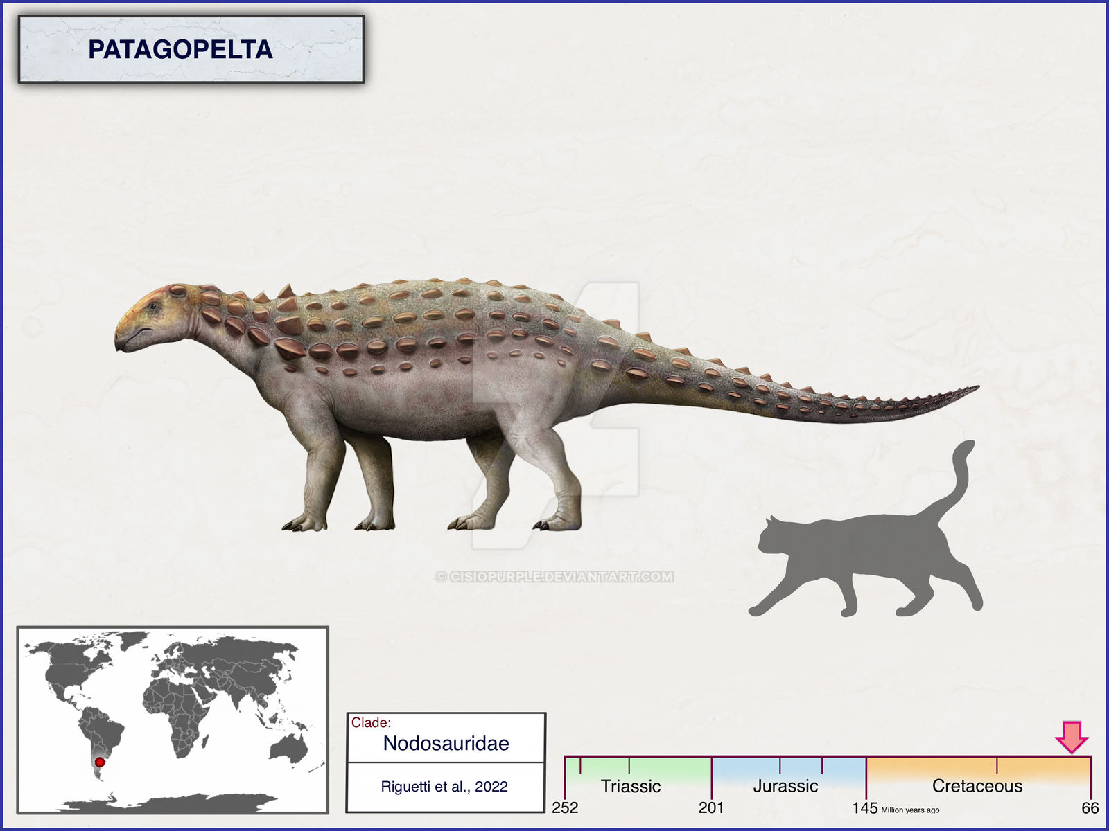 Un nuevu afayu paleontolóxicu en Ríu Negru dexó aprender más sobro un dinosauriu del grupu de los nodosáuridos, que s’estremen por llevar grandes escayos na zona del pescuezu y costazos. Trátase del Patagopelta, que midía dos metros de llargu. La investigación estendiose por décades hasta llograr meyores reconocíes pola comunidá científica internacional.