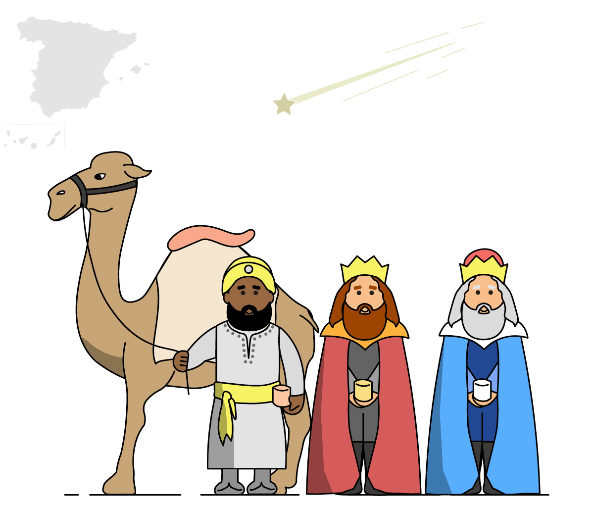 Apurren los regalos la nueche ente’l 5 y el 6 de xineru. Son los principales protagonistes na mayoría de cabalgates d’España y la so llegada hasta se retresmite nel Telediariu. Na tradición cristiana, Melchor, Gaspar y Baltasar (nomes qu’apaecen per primer vegada nel sieglu VI) viaxaron dende Oriente hasta’l llugar onde nació Jesús de Nazaret p’apurri-y oru, inciensu y mirra. Siguiendo’l cercu de lo qu’asocedía con San Nicolás en delles rexones y países, dende’l sieglu XIX oficializóse la tradición de que les sos maxestaes llevaren regalos a los neños: la primer cabalgata entamada por una alministración n’España y de la qu’hai rexistros foi la d’Alcói en 1886.