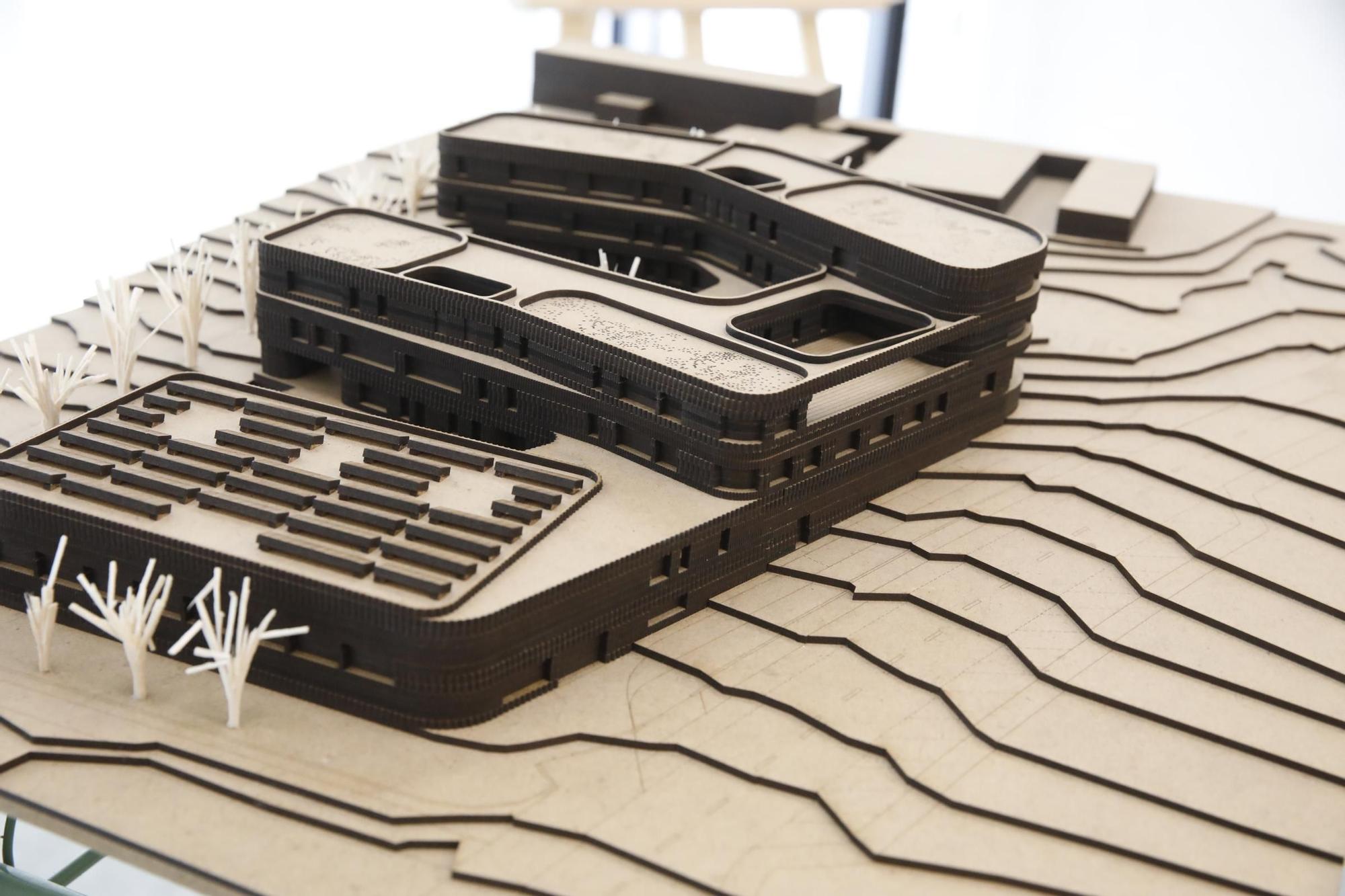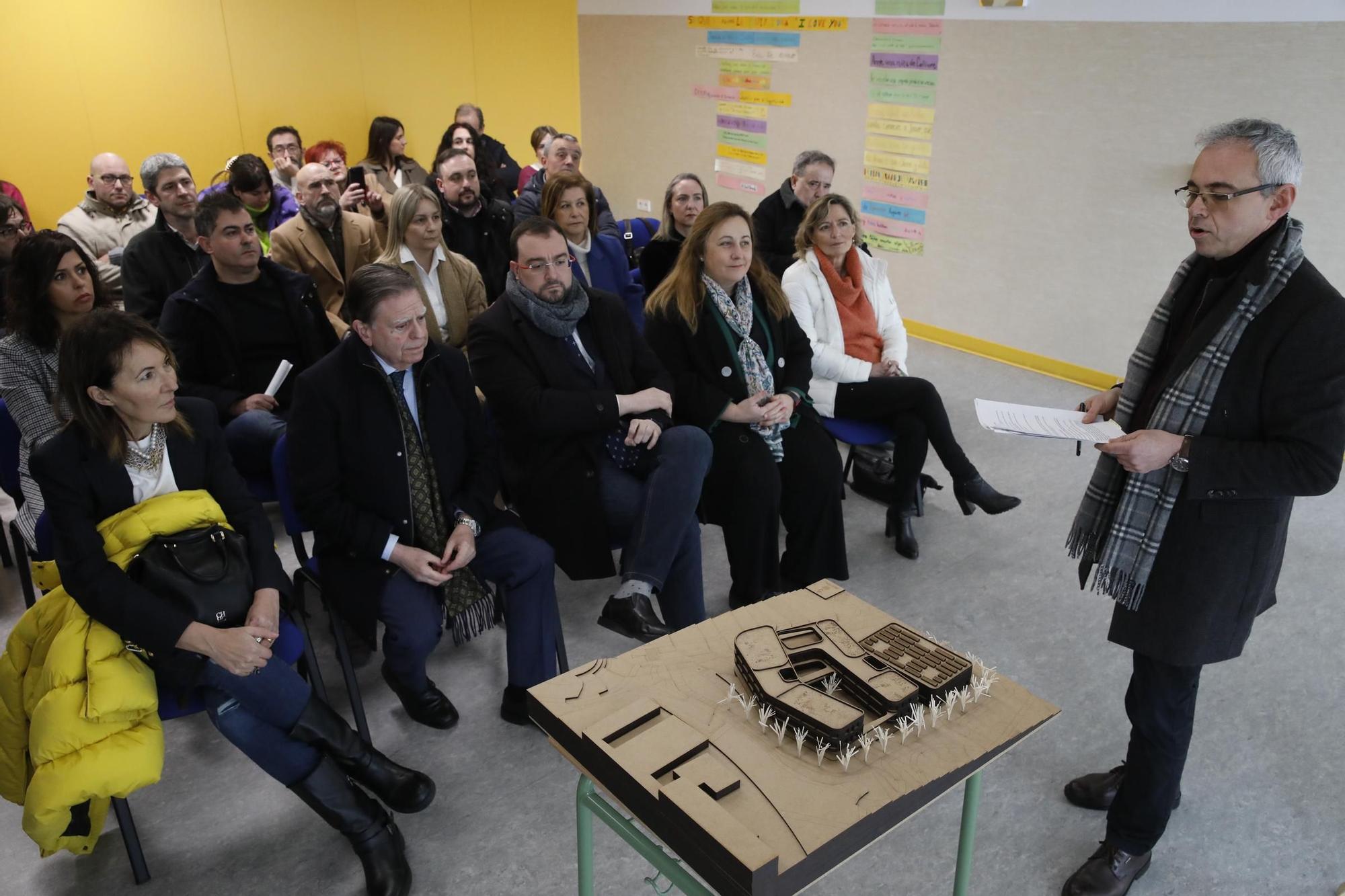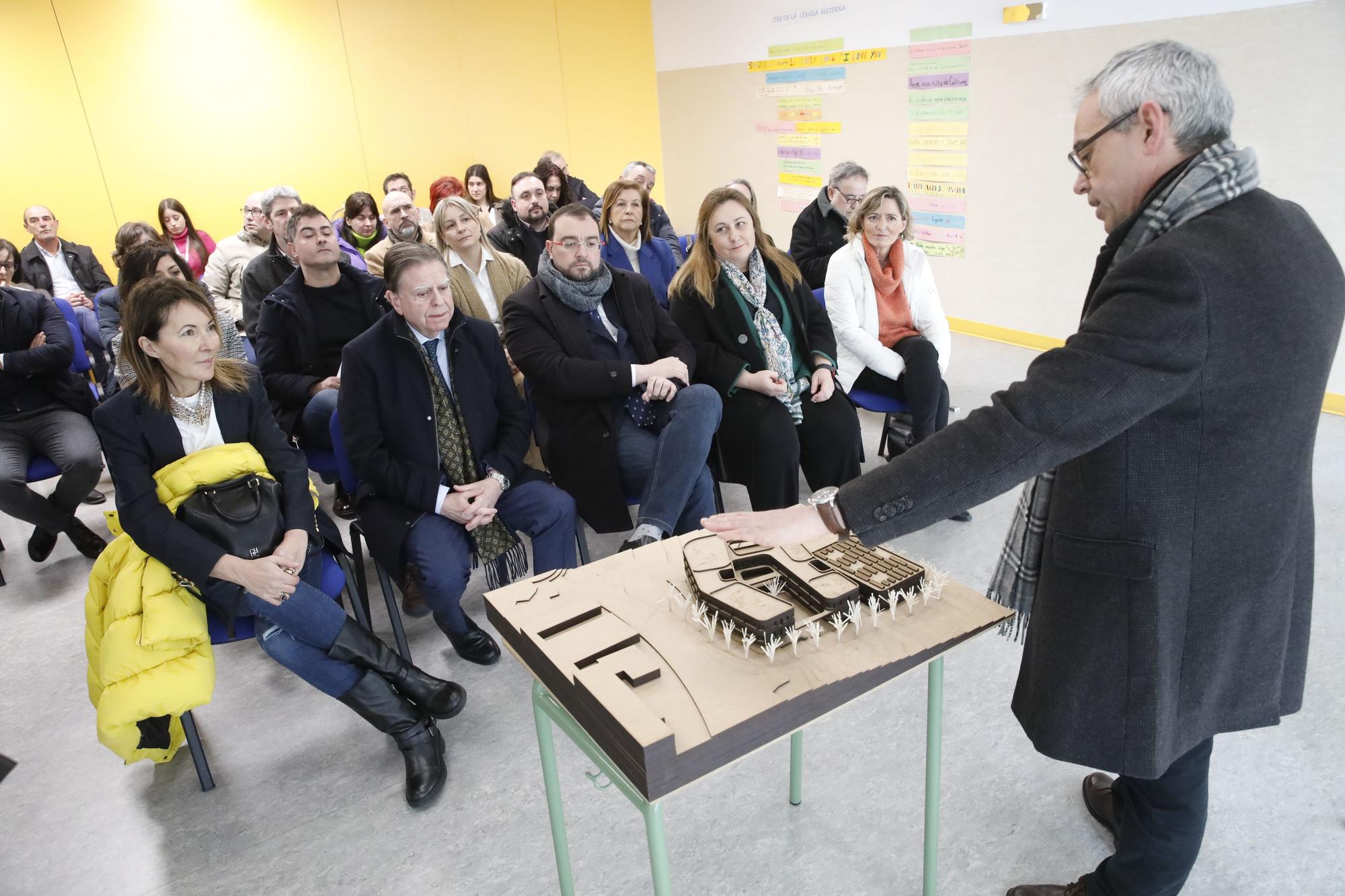 L’arquitectu esplica el planu y la maqueta a los presentes