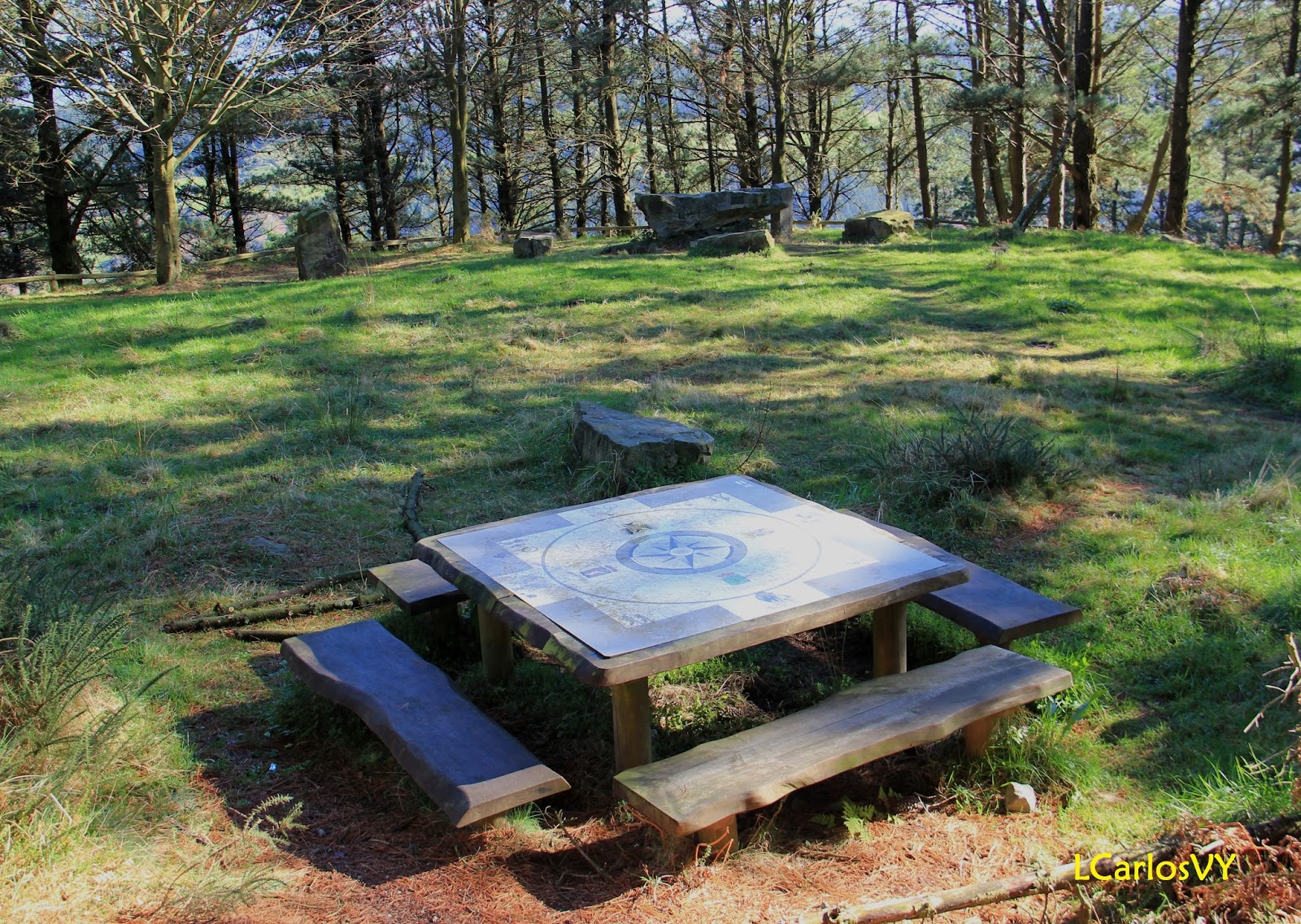 Nella atopamos una gran piedra (restos d’un antiguu dolmen) a manera de mesa arrodiada de cuatro más a manera de sielles, onde la tradición diz que d’antiguo s’axuntaben los xueces de los cuatro conceyos para tratar sobro asuntos comunales, como l’aprovechamientu de les camperes, los montes y la caza. Dende 1983 recuperóse esti costume, y dende entós avanzada la primavera, celébrase xuna fiesta campestre a la qu’alleguen rexidores y vecinos de los cuatro conceyos. Como vemos nel videu, amás d’estes roques históriques, asitióse xuna gran mesa de madera na qu’apaecen marcaos llinden de cada conceyu colos sos respectivos cuatro bancos.