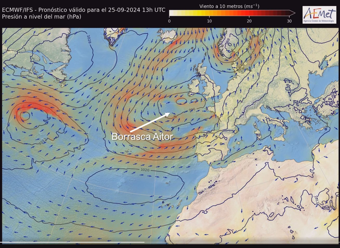 Nomada por AEMET, ye la primera de gran impactu de la temporada 2024-2025. Va dexar vientos fuertes, envernada marítima y agües intenses en zones del norte y oeste de la Península.