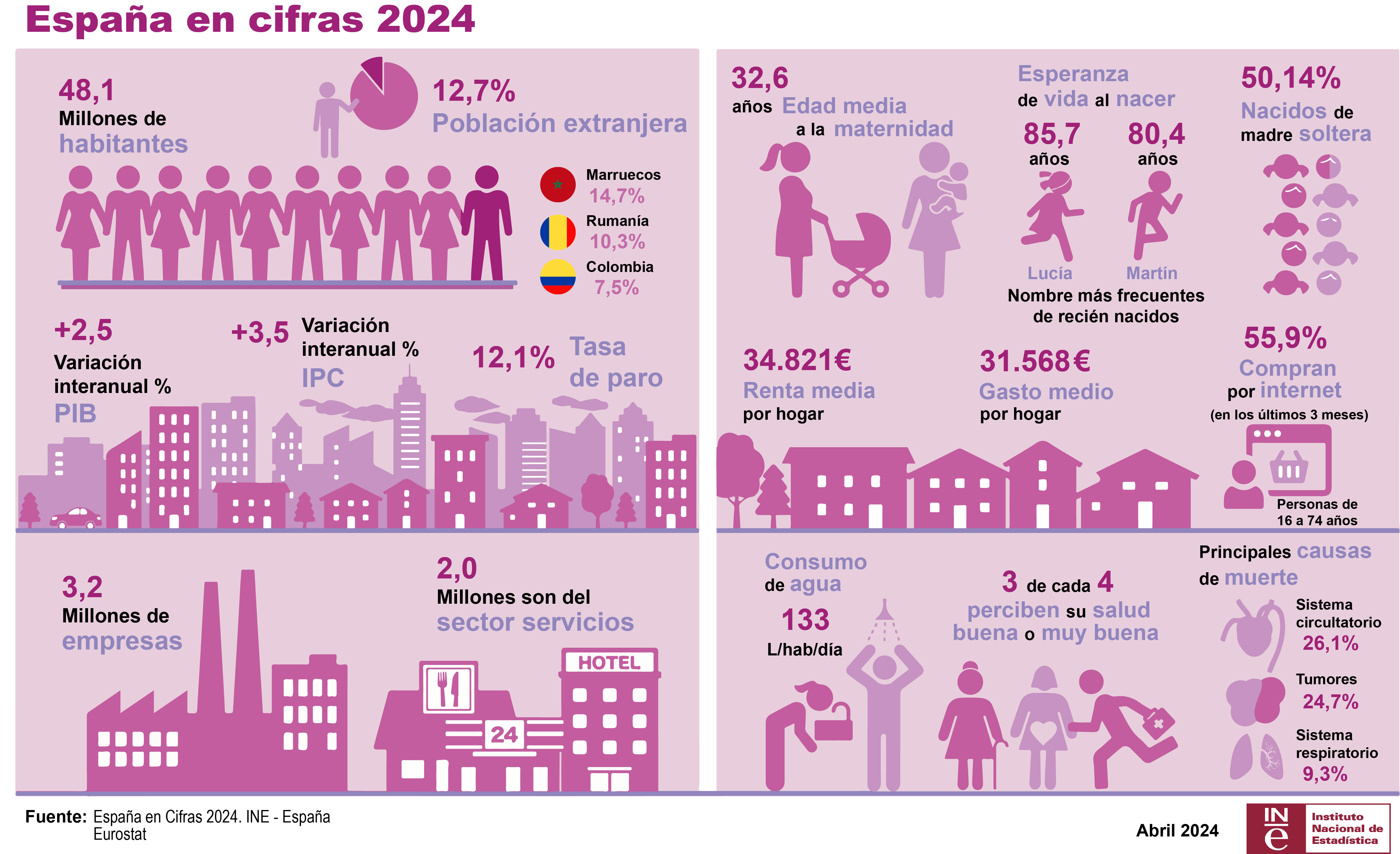 - Eurostat/ gráficu / wiki / España en cifres / INE /
