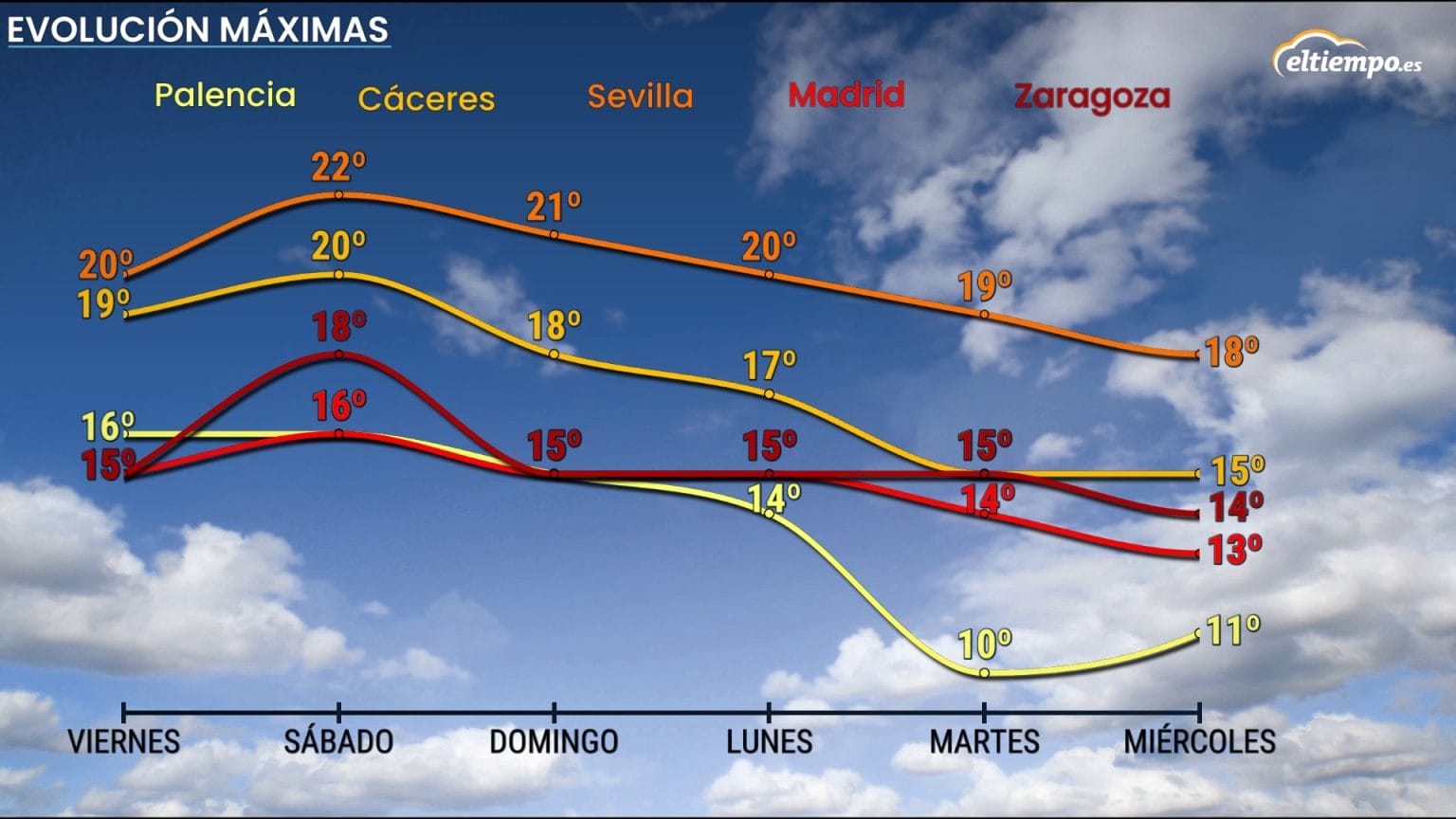 De cara a la próxima selmana, sobremanera ente llunes y martes va haber descensos sicasí la primer selmana d’avientu y coincidiendo cola ponte, el calor va siguir siendo anómalu n’España.