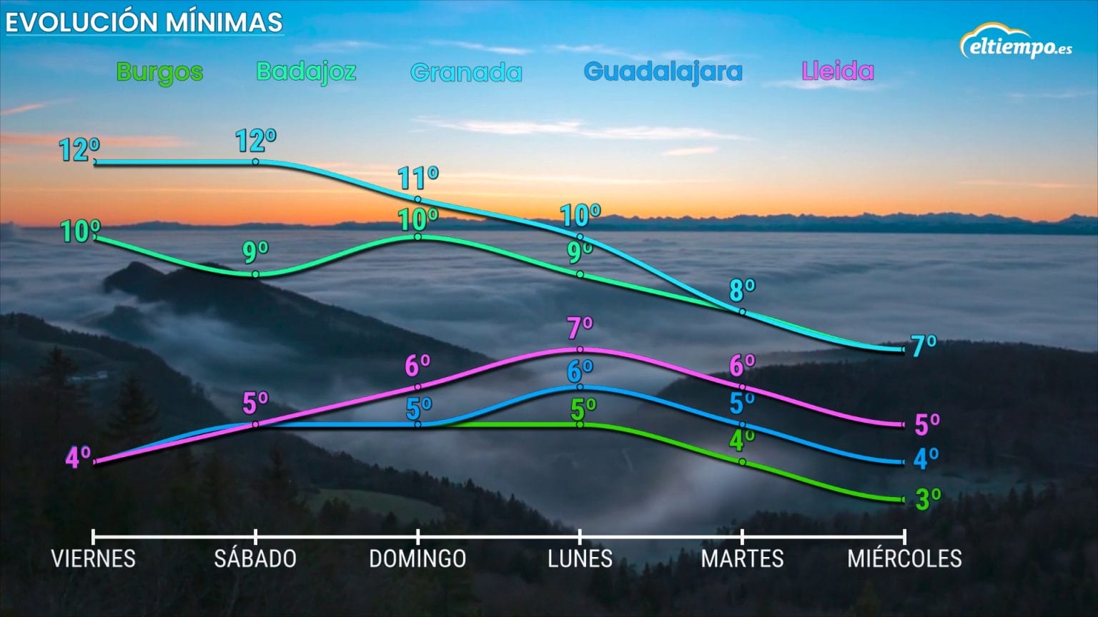 L’iviernu meteorolóxicu arrinca esti domingu n’España con un nuevu frente y una vaguada. Tres díes d’estabilidá, el domingu podríen llegar agües coincidiendo col entamu d’avientu y del iviernu meteorolóxicu. Ente’l llunes y el martes va entrar aire frío tres el frente del domingu, que va baxar los termómetros. El domingu espera la llegada d’un frente y tres él, averaríase una vaguada y xuna masa d’aire más frío