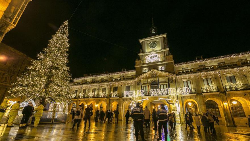La cai Uría y la plaza de la Escandalera acoyeron, esta tarde, el tradicional encendíu de les lluces de Navidá dando asina la bienvenida a un mes apináu d’actividaes festives. L’alcalde, Alfredo Canteli, y dellos alumnos de la Escuela Municipal de Música María Teresa Prieto fueron los encargáivos de remanar el botón que, al intre, encendió les lluces que van decorar 337 cais y prestes del conceyu.