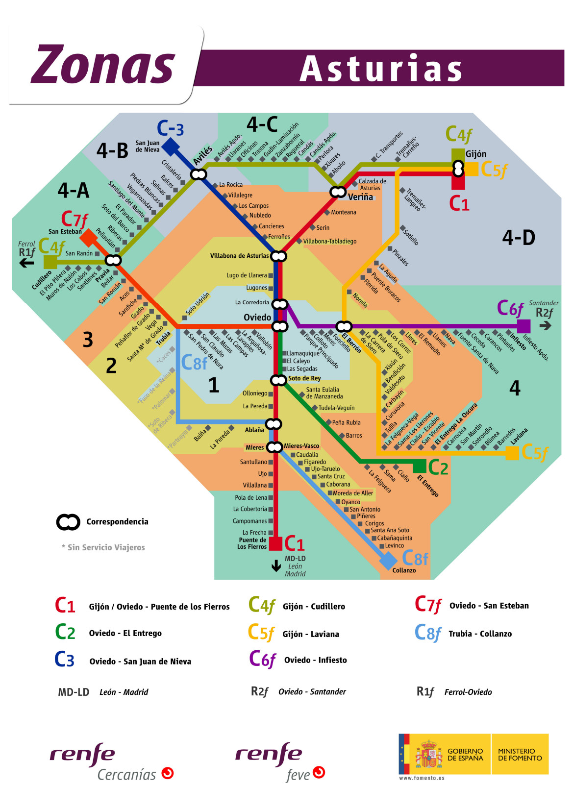 - RENFE: Rede Nacional de Ferrocarriles d’España / FEVE: Ferrocarriles de Vía Estrecha