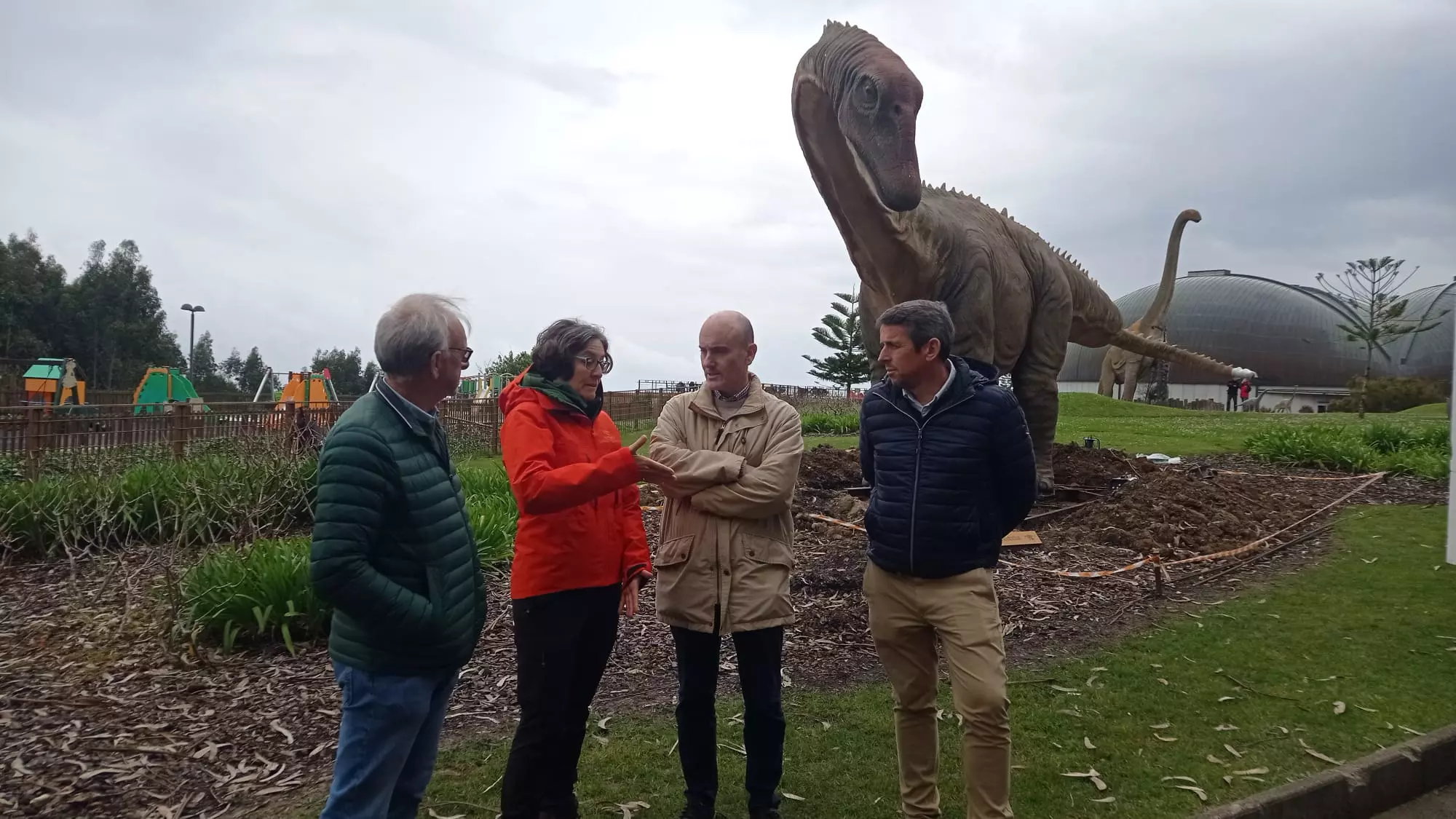 Más d’una ventena de retruques de dinosaurios del Triásicu, del Xurásicu y Cretácicu pueden reparase na zona esterior xuntu con material orixinal procedente de La Mariña de los Dinosaurios, como una buelga d’un dinosauriu terópodo, el tueru fosilizáu d’una conífera o’l rastru formáu por dos buelgues consecutives d’un terópodo.