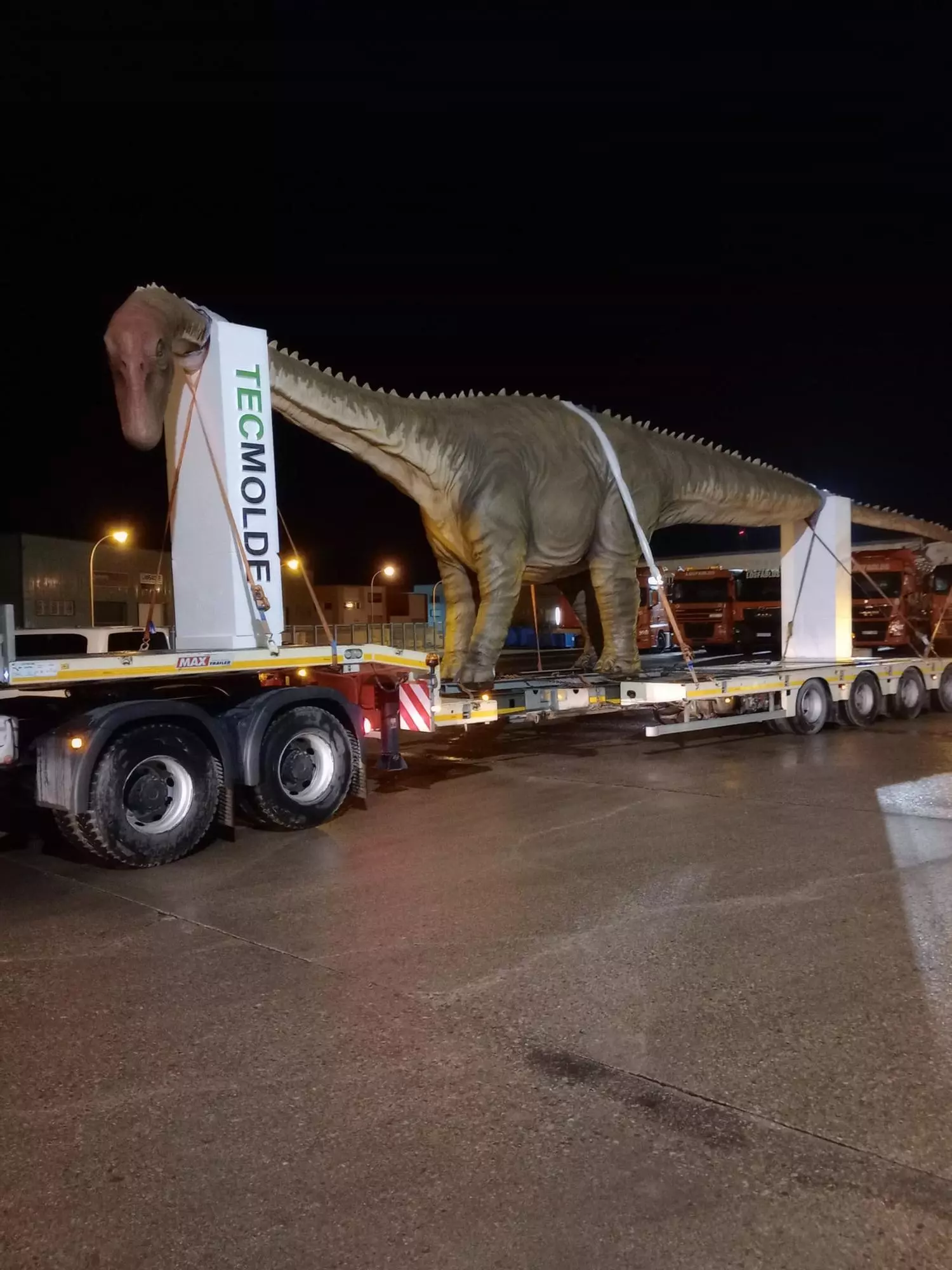 Pero esti retruque de diplodocus tien hestoria. Fabricose en solu dos selmanes, tiempu récord para esti tipu de trabayos, nes instalaciones d’una empresa aragonesa, Tecmolde, na localidá de Loporzano, n’Huesca. Pero nun ye una empresa cualesquier. Al pie de la so «hermana» Shu dixital, son especialistes en decoraos de cine y parques temáticos. Inclusive para Arabia Saudina realizaron encargos.