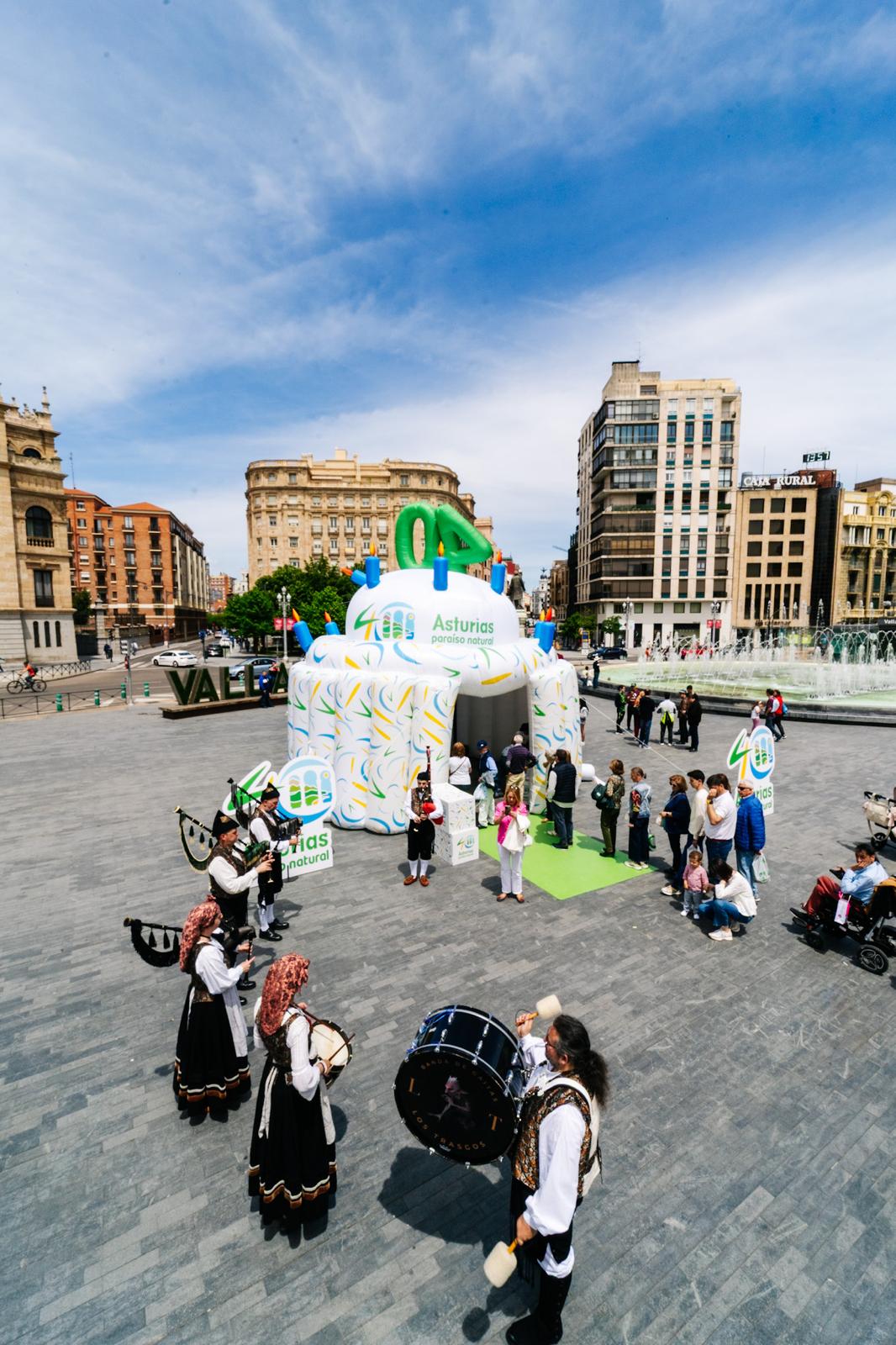 Más de 1.200 persones participaron nesta xornada festiva na capital de Castiella y Llión, onde’l Principáu promocionóse como destín turísticu con una orixinal oficina de turismu con forma de tarta y l’inconfundible soníu de les gaites asturianes. Una celebración que xune tradición, identidá y promoción turística, reafitando’l valor d’una marca que llevó’l nome d’Asturies por tol mundu mientres cuatro décades.
