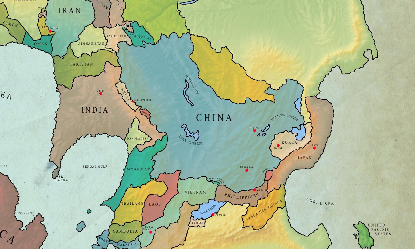 Según esti modelu, América Llatina sería más o menos igual, pero con vecinos africanos nel este. Cuba taría pegáu a Estaos Xuníos, Groenlandia taría al llau de Canadá y España siguiría colindando con Francia y Portugal, pero tamién con Italia, Marruecos, Túnez y Arxelia. Inglaterra tamién tendría pegada a Francia y Corea taría nun sándwich interesáu ente Xapón y China.